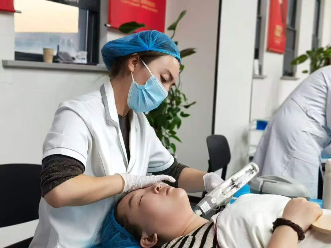 此次研修打破传统培训模式,组织美导团队深入战略合作伙伴——优度集团的研发中心与生产基地,由胶原重塑技术培训导师亲自授课。从胶原重塑的原理机制深度学习,到消毒流程的标准化复刻,再到实操细节的毫米级打磨,每一项内容都直指服务品质核心。贴合度的精准把控、操作稳度的反复锤炼、线条走势的美学雕琢,让技术标准真正转化为服务能力。