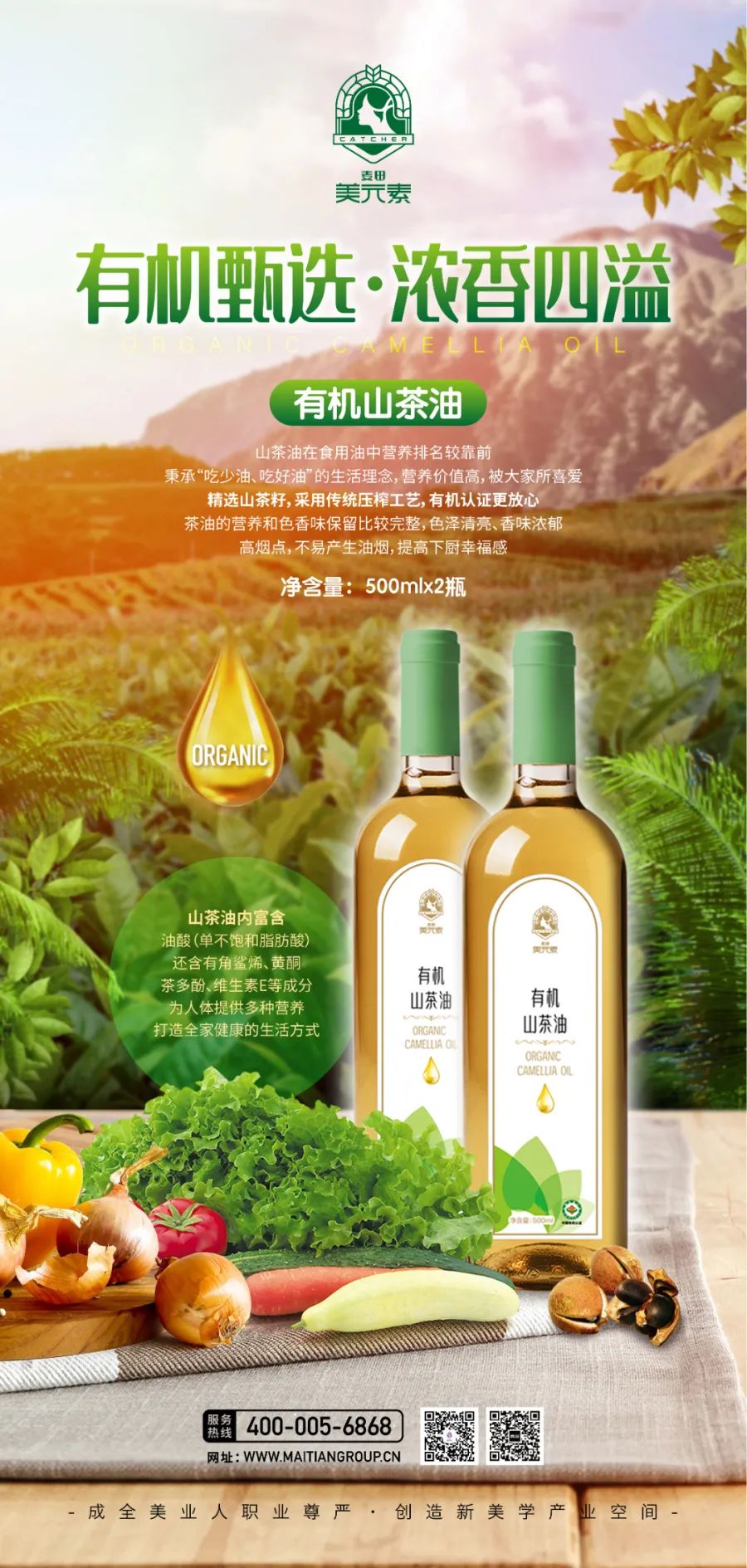 精选山茶籽,采用传统压榨工艺,有机认证更放心,茶油的营养和色香味保留比较完整,色泽清亮、香味浓郁,高烟点,不易产生油烟,提高下厨幸福感!山茶油富含油酸(单不饱和脂肪酸),还含有角鲨烯、黄酮、茶多酚、维生素E等成分,为人体提供多种营养,打造全家健康的生活方式。