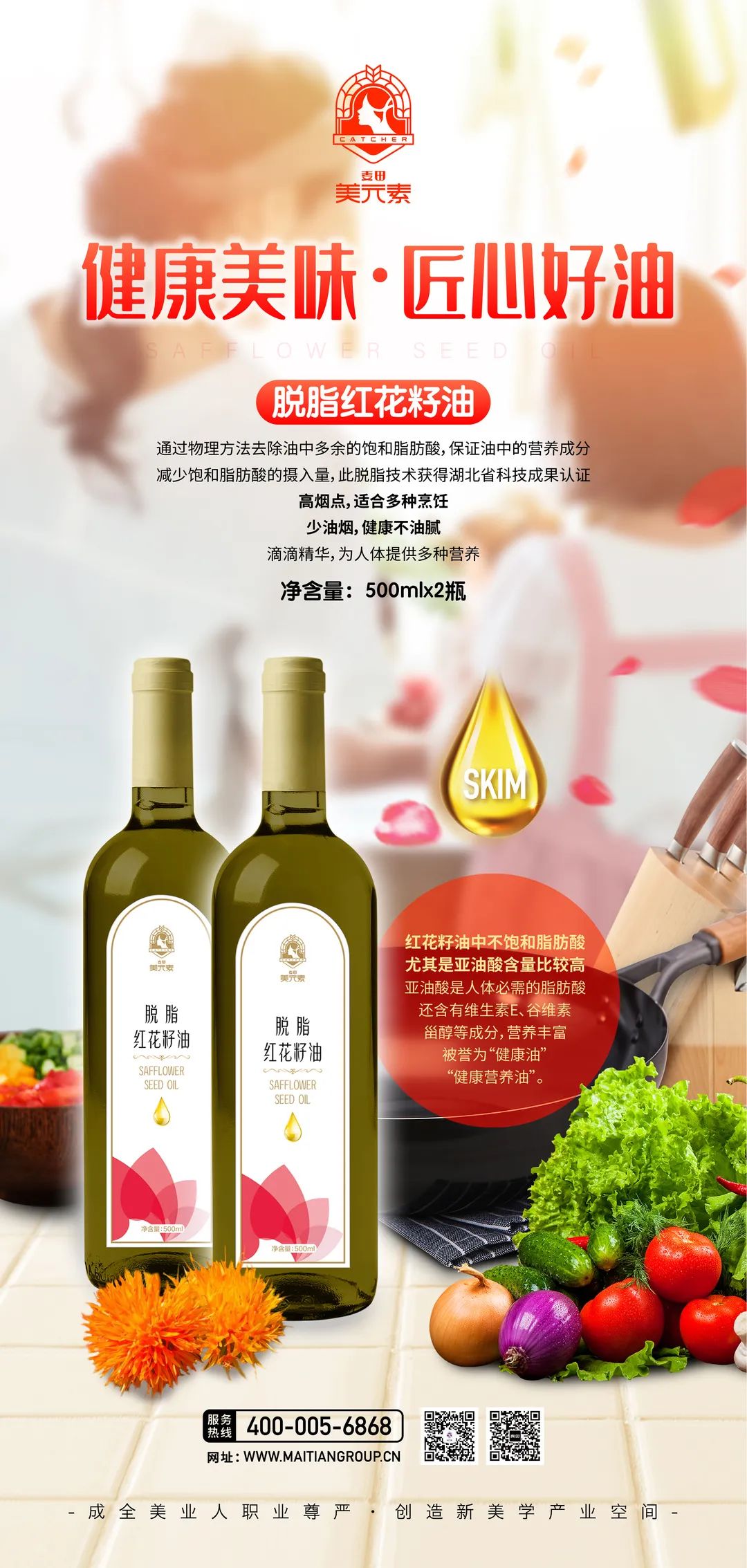 红花籽油中不饱和脂肪酸尤其是亚油酸含量比较高,亚油酸是人体必需的脂肪酸,还含有维生素E、谷维素、甾醇等成分,营养丰富,被誉为“健康油”、“健康营养油”。